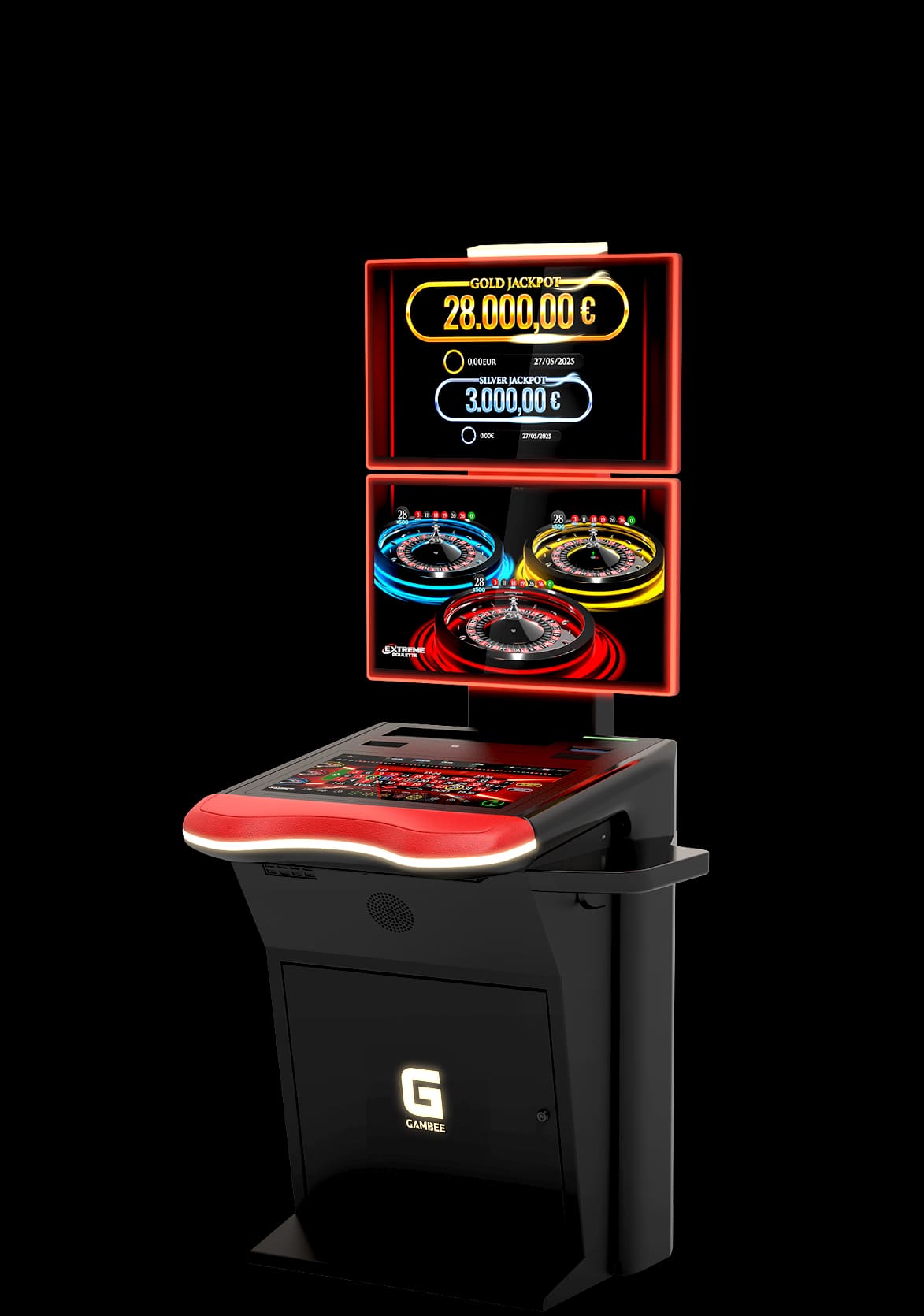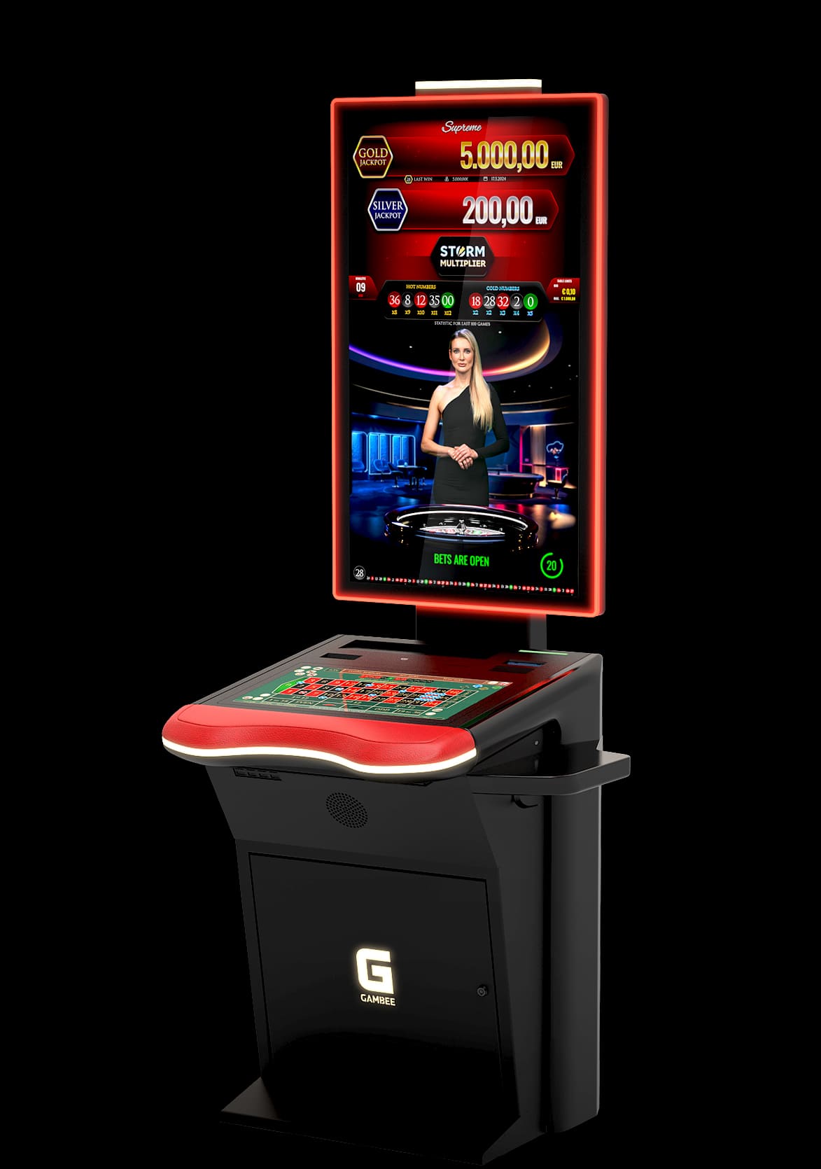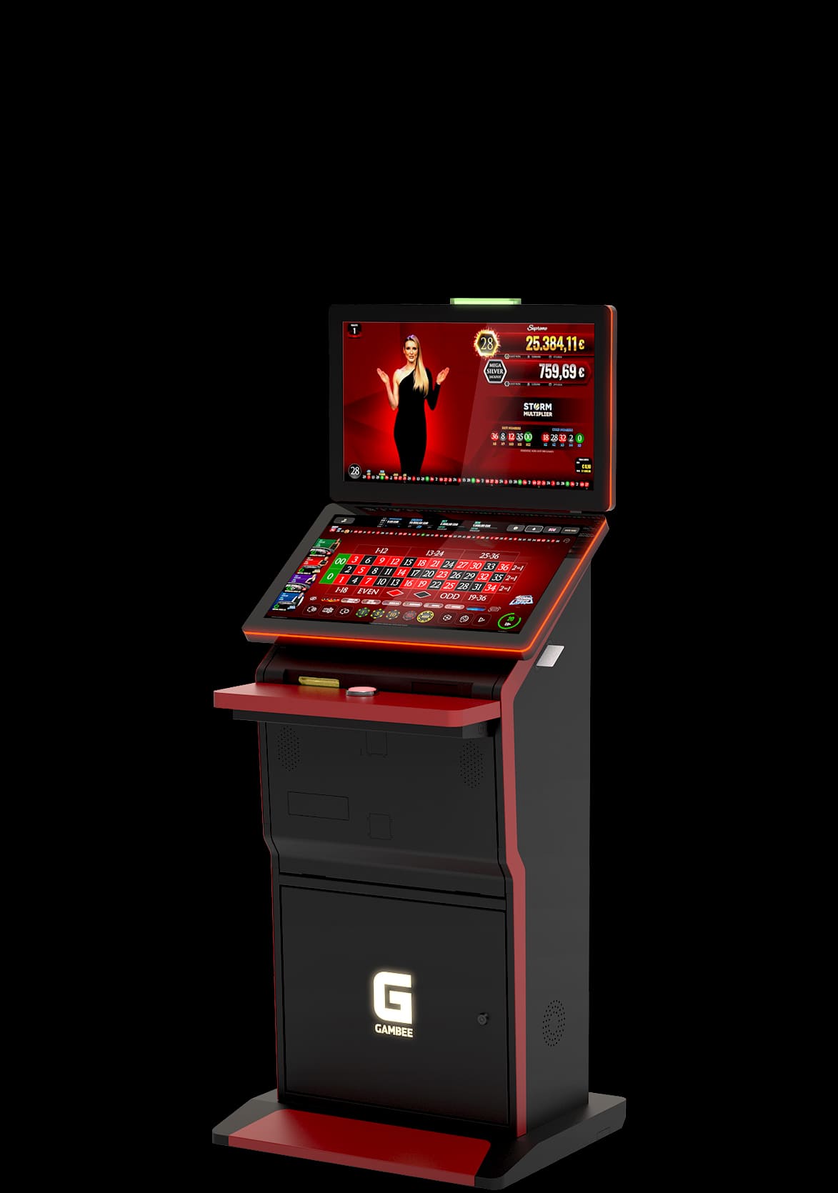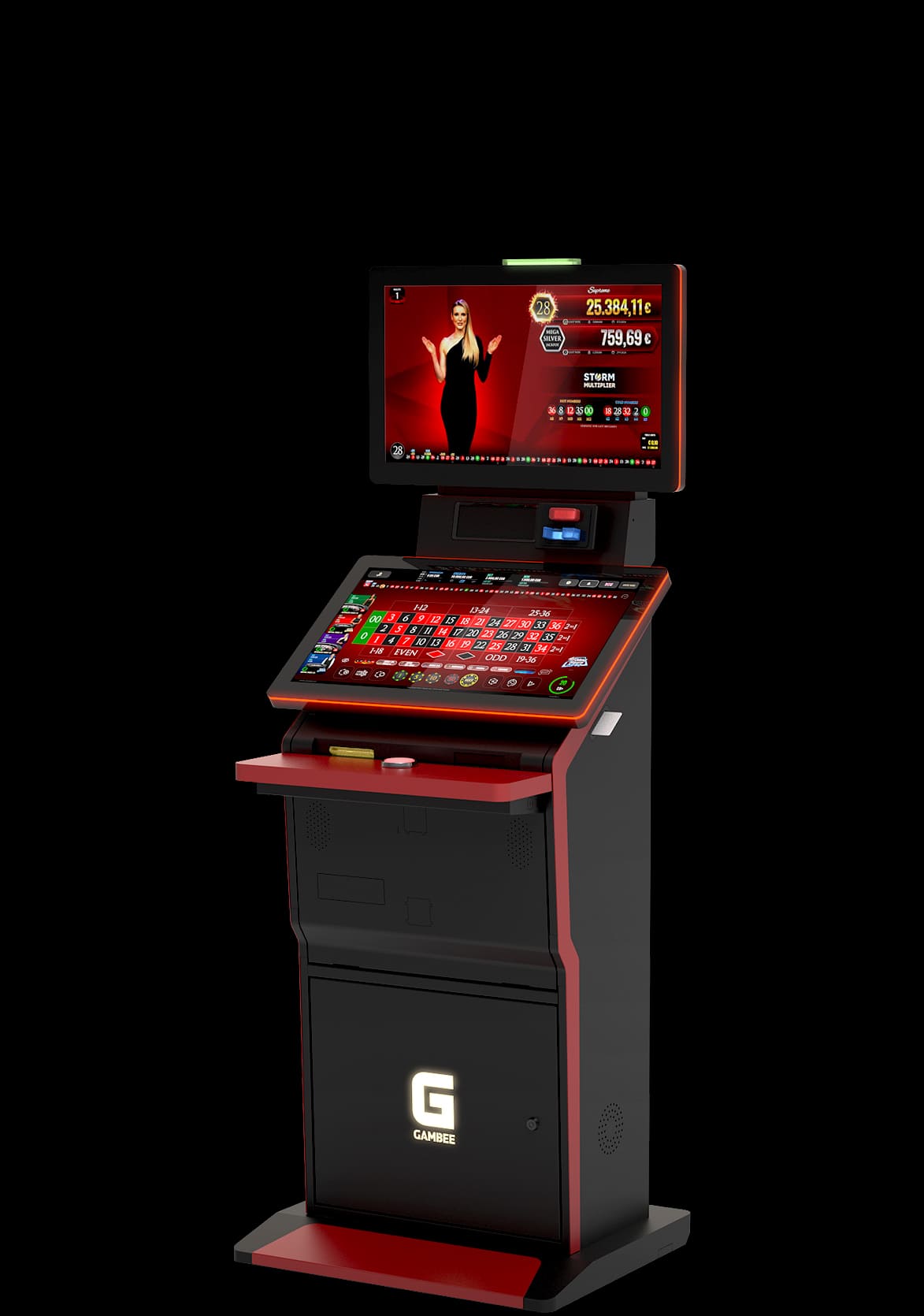 High-resolution displays: 23,8” Full-HD player display and 27” Full-HD topper display with LED illumination
