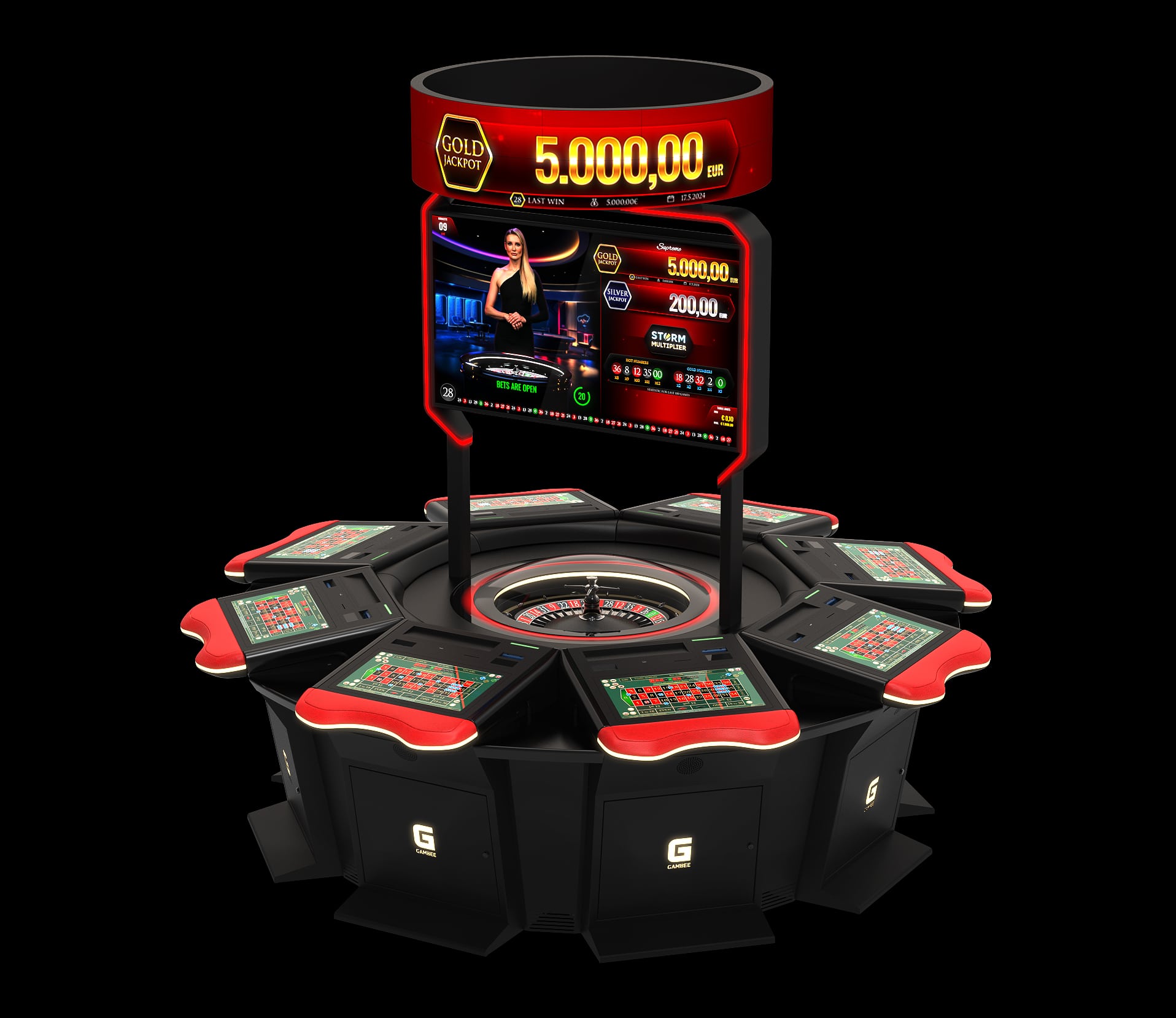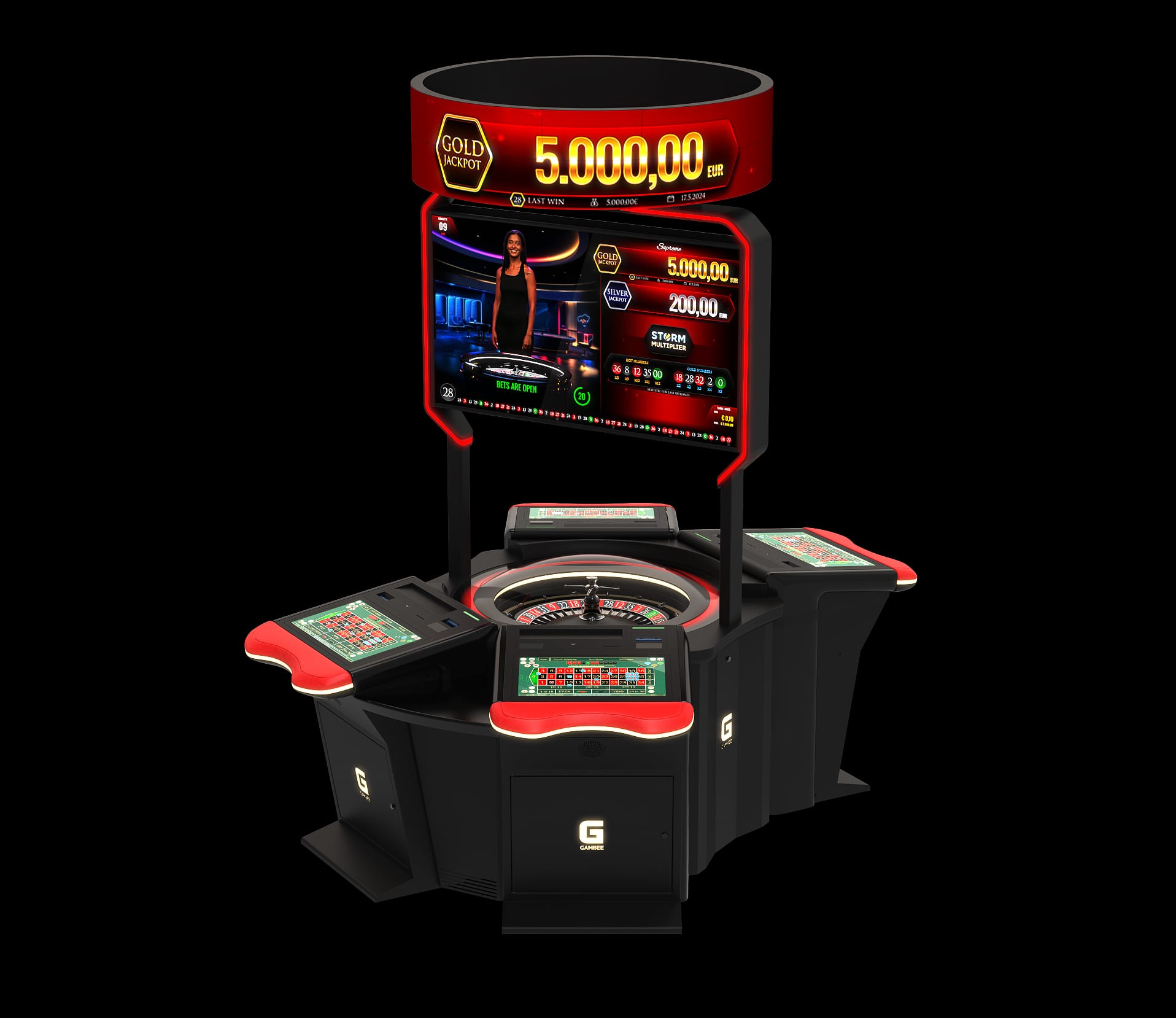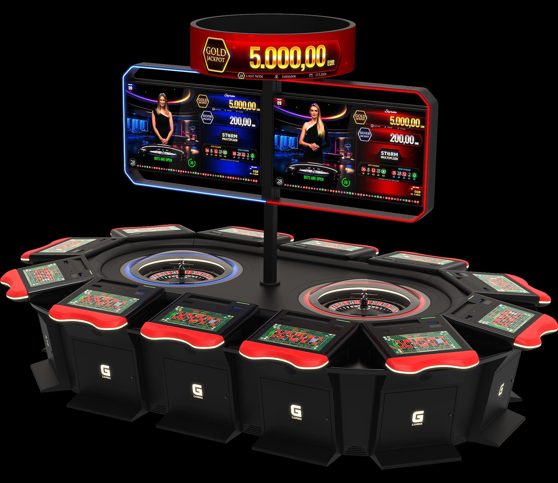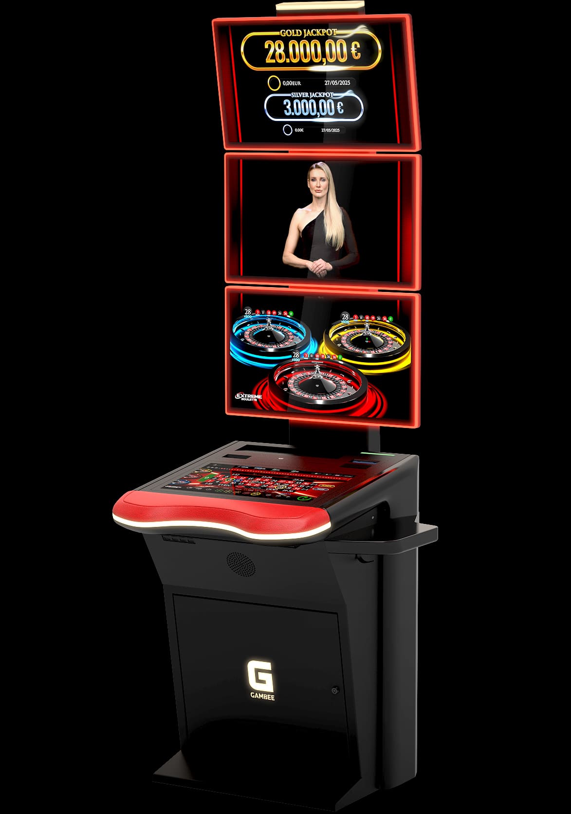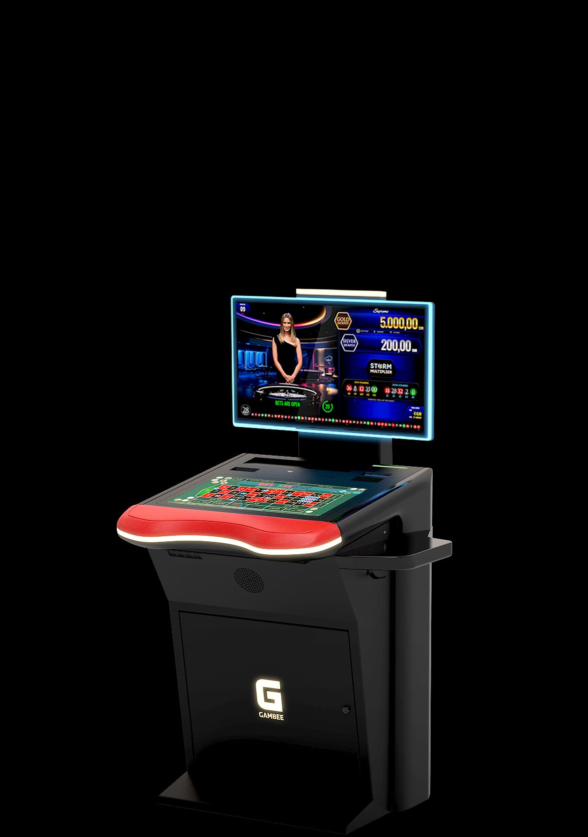 High-resolution displays: 23,8” Full-HD player display and 27” Full-HD topper display with LED illumination
