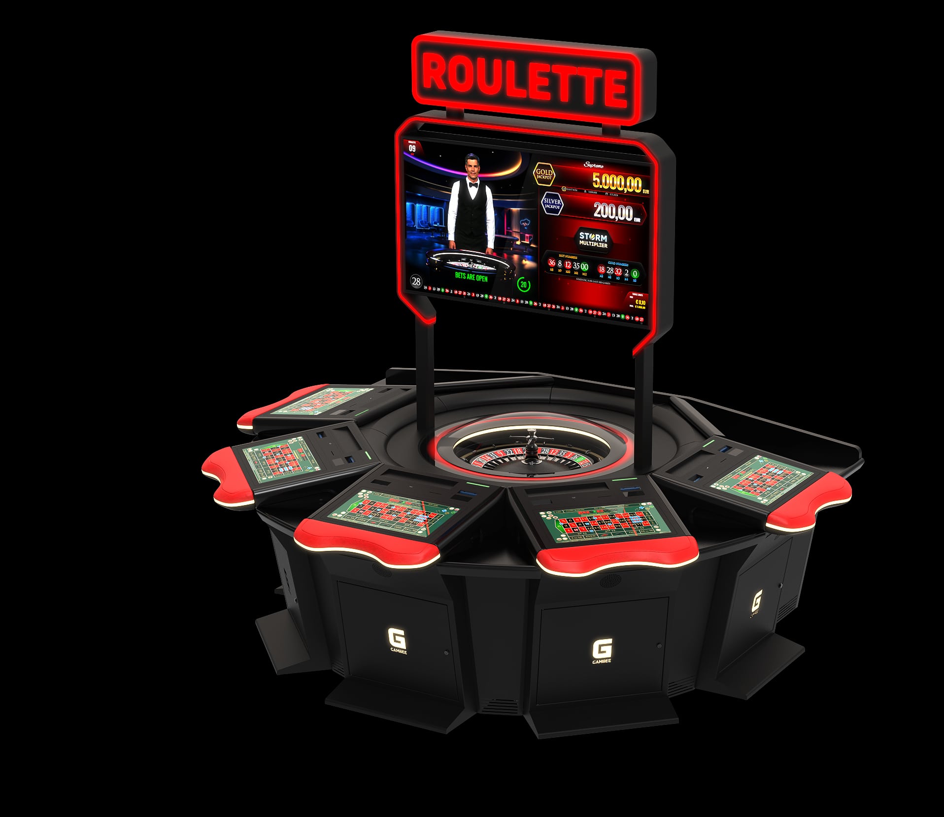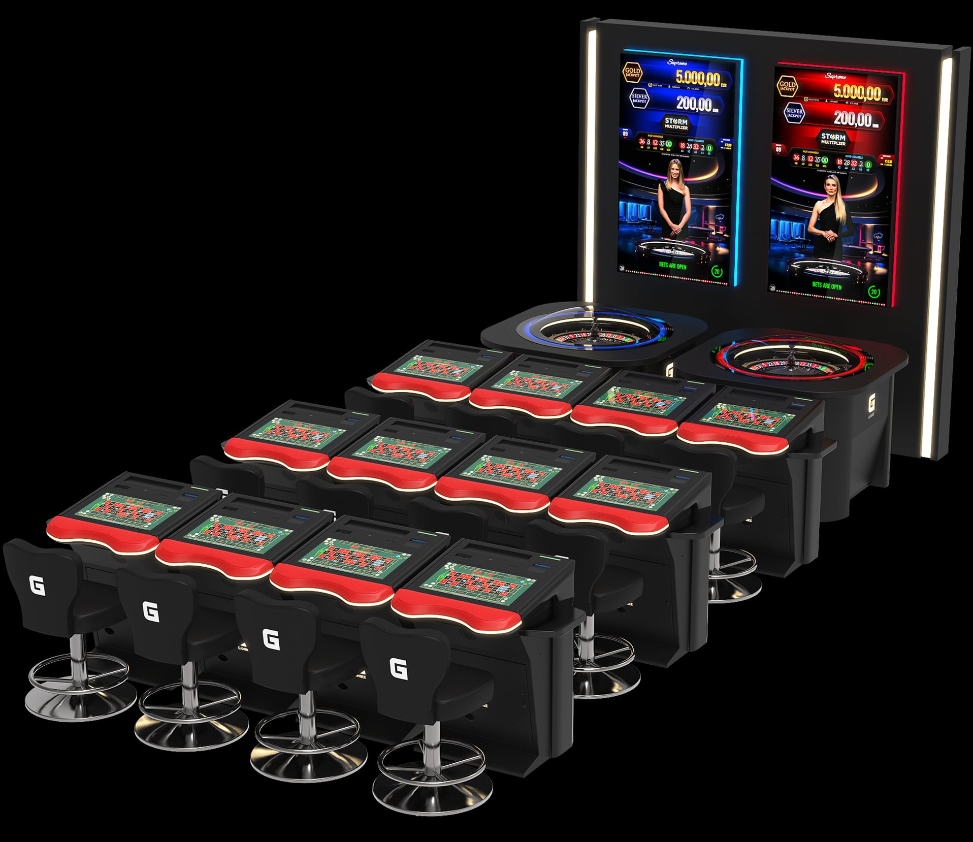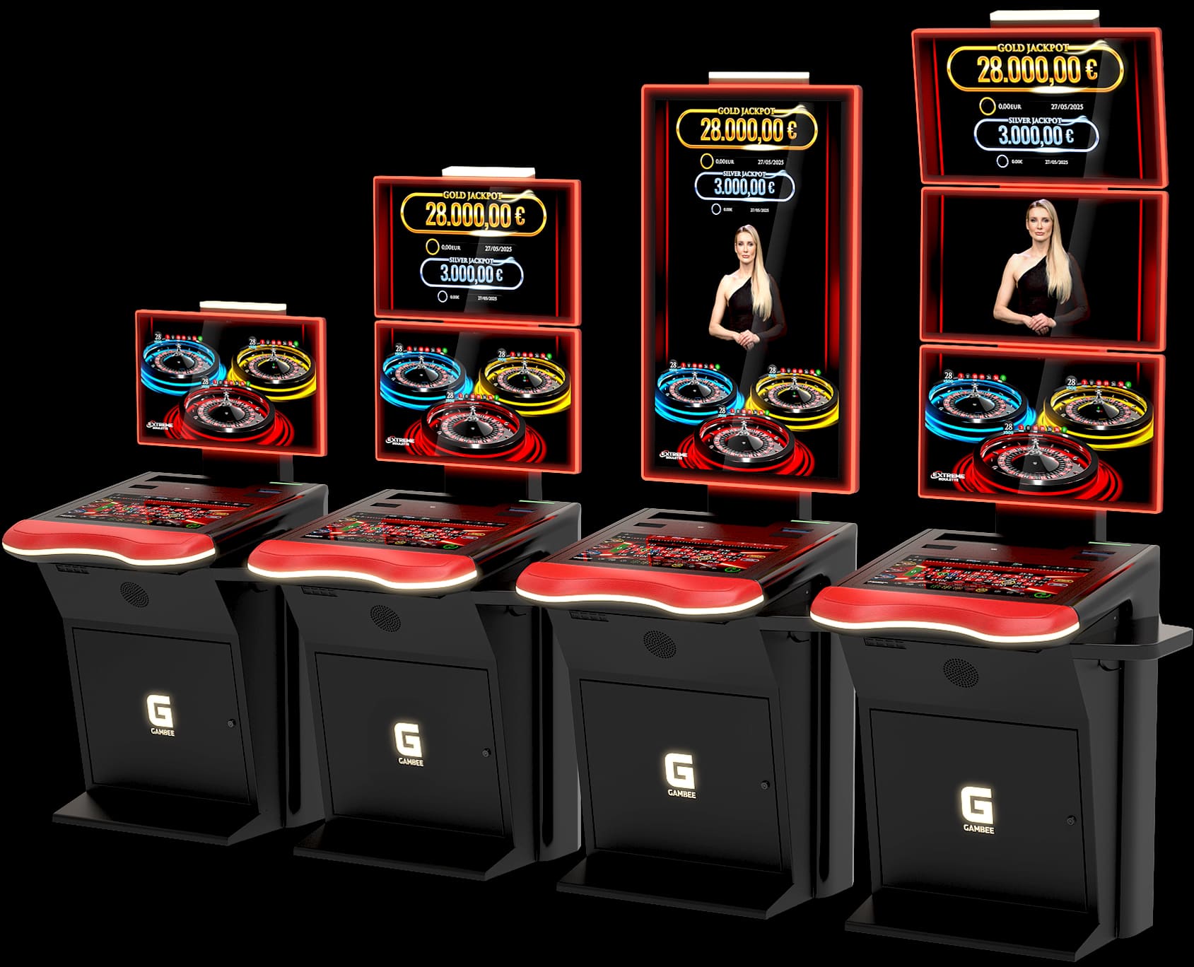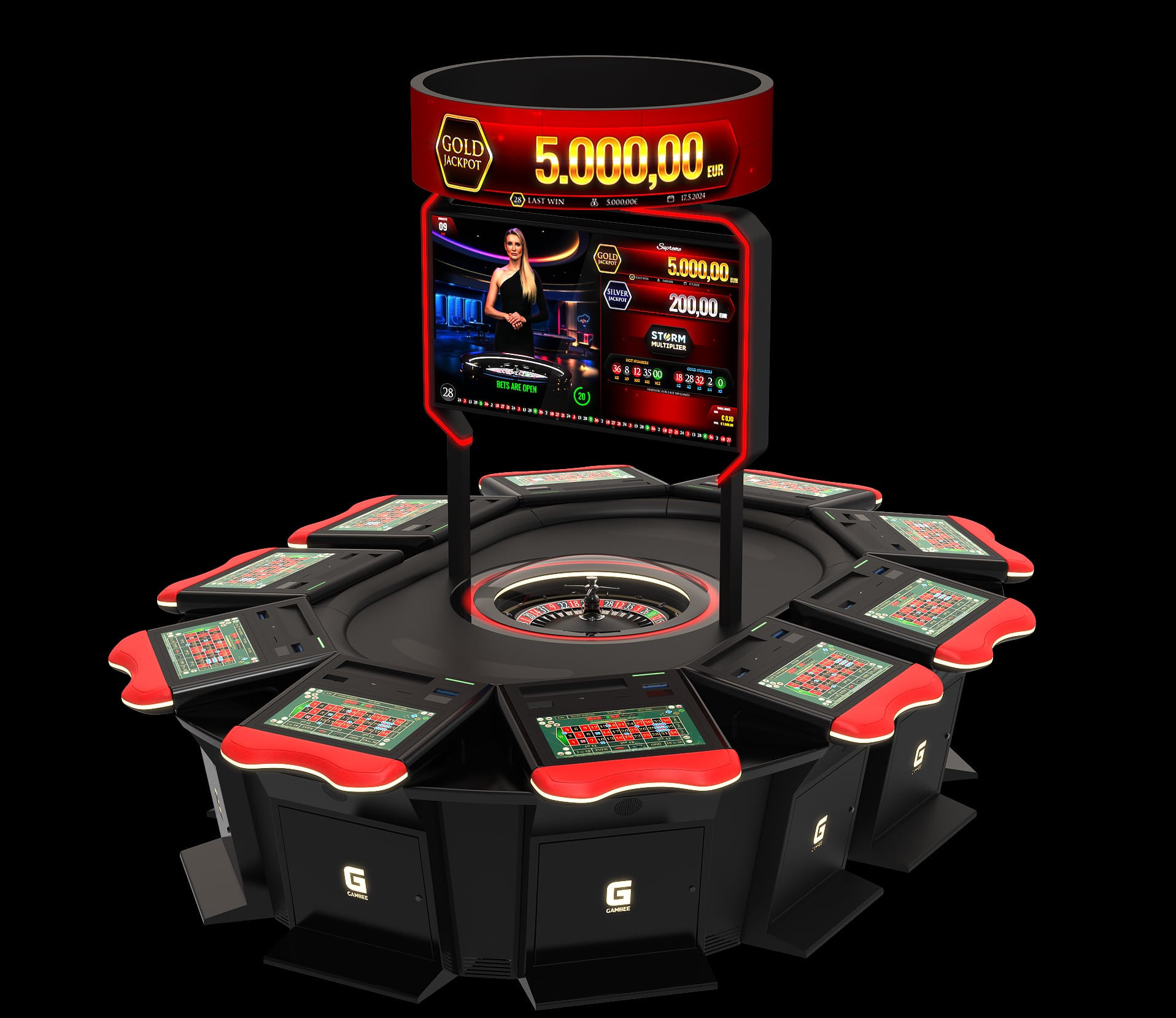 High-resolution displays: 23,8” Full-HD player display and 27” Full-HD topper display with LED illumination